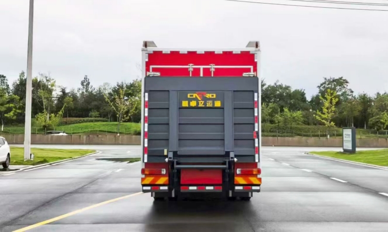 車輛采用標(biāo)準(zhǔn)化拉臂機(jī)構(gòu),支持多類型器材箱體快速裝卸。模塊箱內(nèi)部以編織帶和絞繩器固定裝備,確保運(yùn)輸穩(wěn)固性;箱體容積達(dá)8立方米,可容納22類常規(guī)救援設(shè)備,如消防水帶、破拆工具及生命探測儀,實(shí)現(xiàn)“一車多能”的靈活部署。